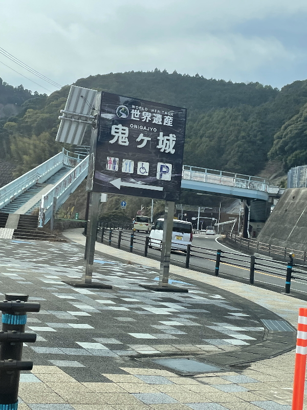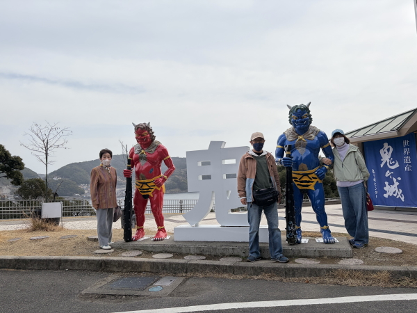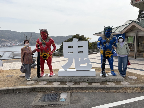鬼のモニュメント前で撮影。ドジャース大谷好きのタクシーの運転手さんに写真撮っていただきました。
