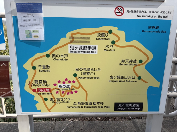 あらかじめ観光案内所に予約しておいた観光タクシーに乗込み1時間コースで周辺を観光する。まずは鬼ケ城へ。