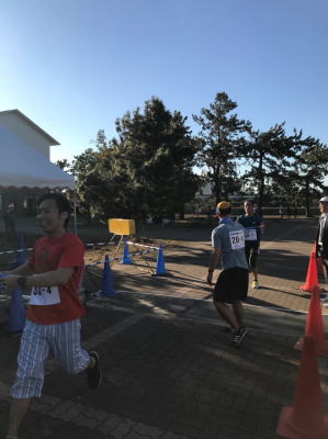 3回目のS崎さん。2回目と同じタイムで力走。もう1周あるかと一応準備してましたが2時間3分を越え、チームとしては2番目でゴール。順位は懇親会で発表と…。