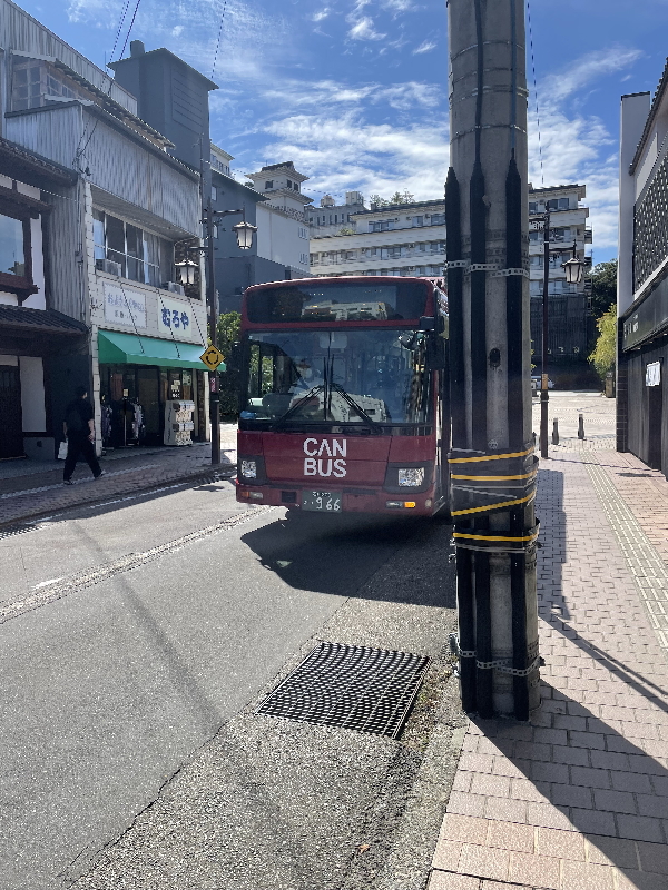 界加賀をチェックアウトし、総湯のお土産売り場で温泉卵を購入。キャンバスバス停前には九谷焼絵付け体験をやっているお店やスイーツの店が繁盛していた。