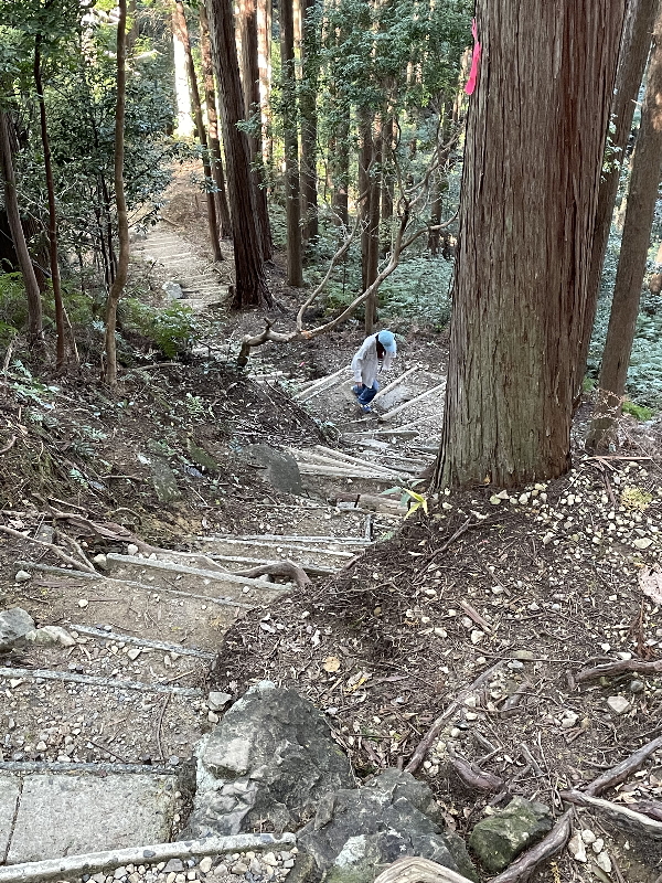 ここは行かねばと急こう配の道を登っていく。途中、トレイルランしている1人と2人組の登山者とすれ違う。