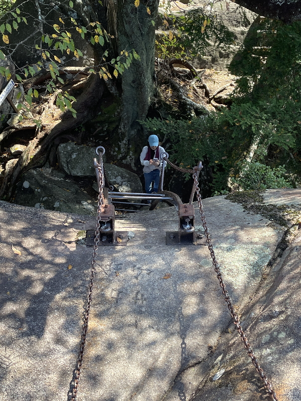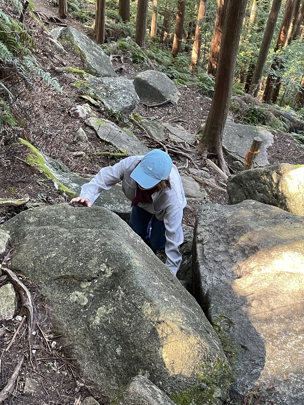 しんどくて心折れかけていたかーちゃんのため、「あとどれくらいですか?」とたずねると「私の足で5分くらいかな、でも2回くらい休憩した」と。実際はそこからは手をつかないと登れない場所もあり15分程かかった。