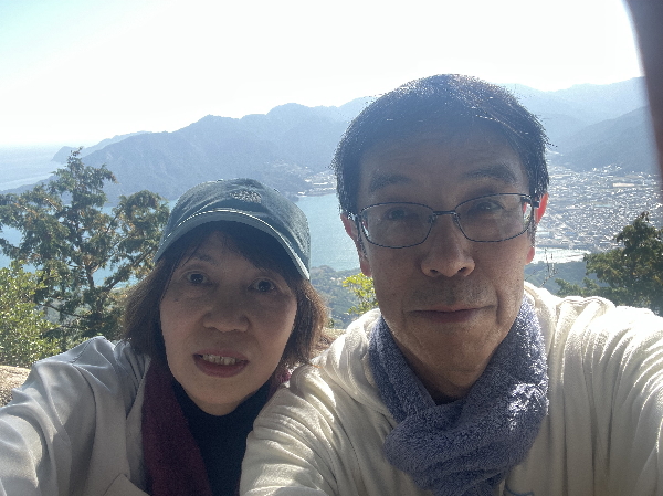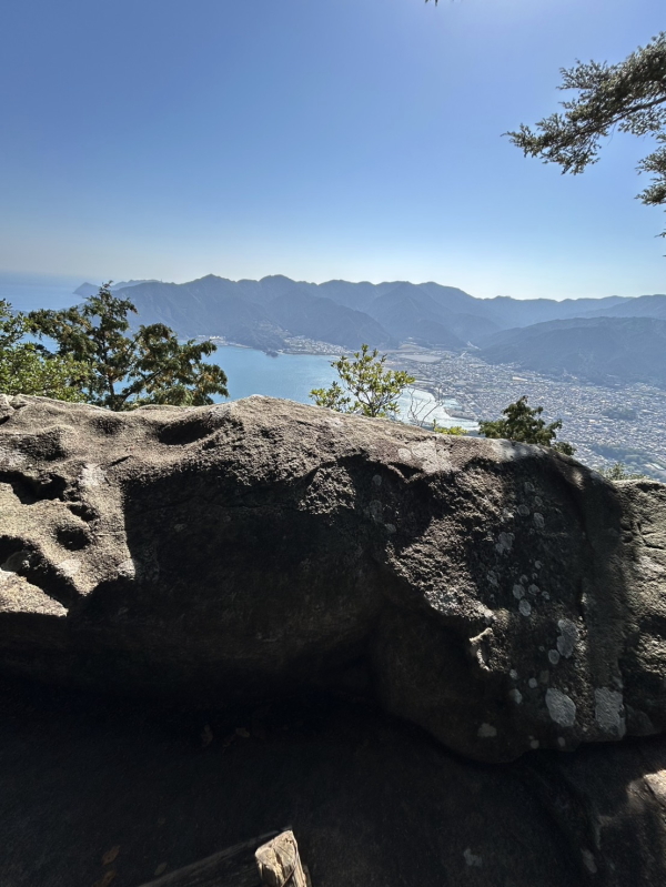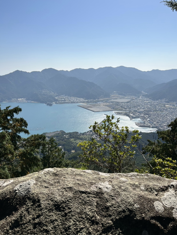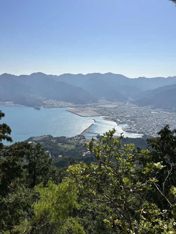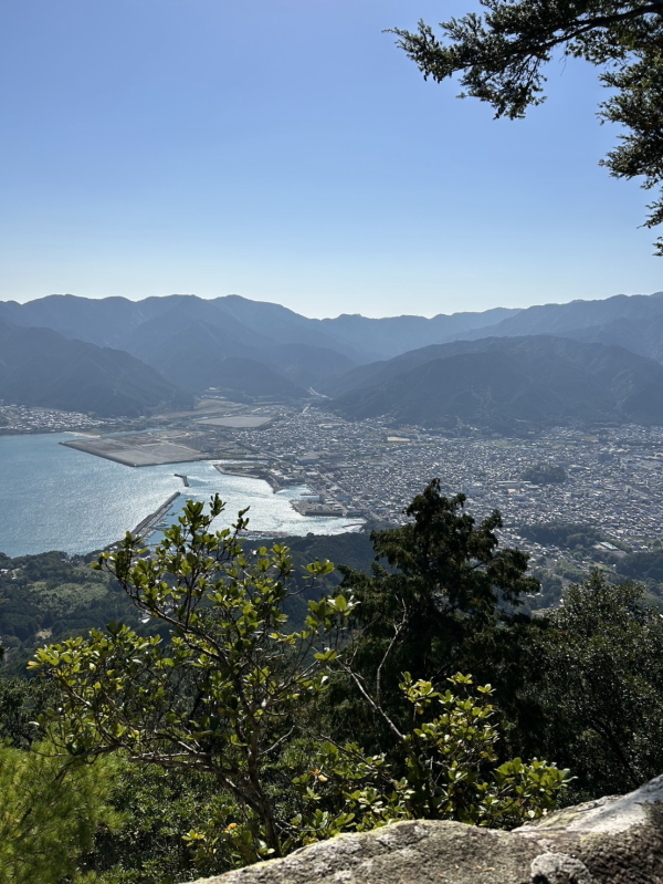 尾鷲湾、尾鷲市の町並みが一望できます。頑張った甲斐がありました。