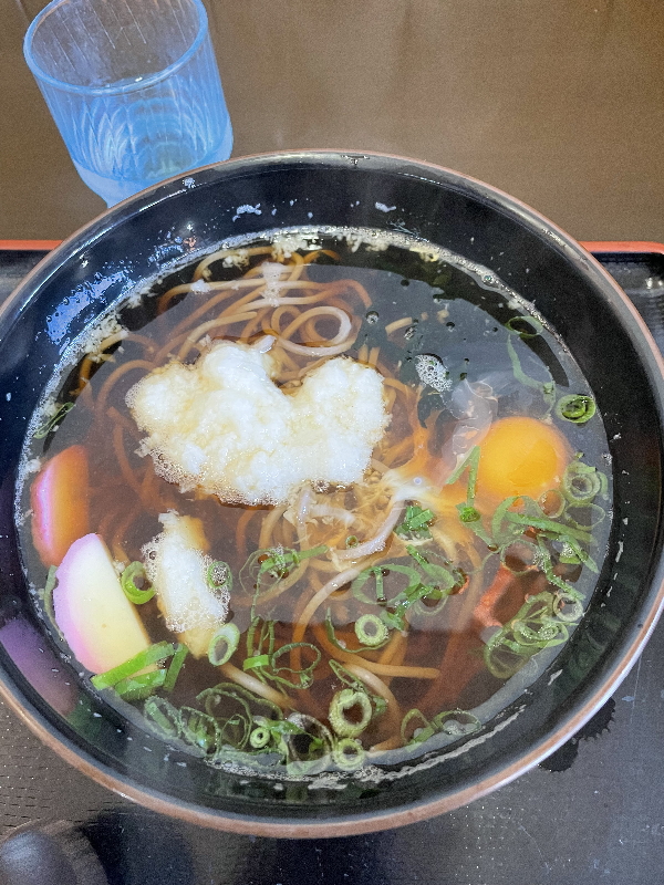 バスで道の駅海山に戻りやっと昼食。お茶もなくなっていたので喉もカラカラ。冷水をがぶ飲みした後、ラーメン、月見そばを食べて一息。